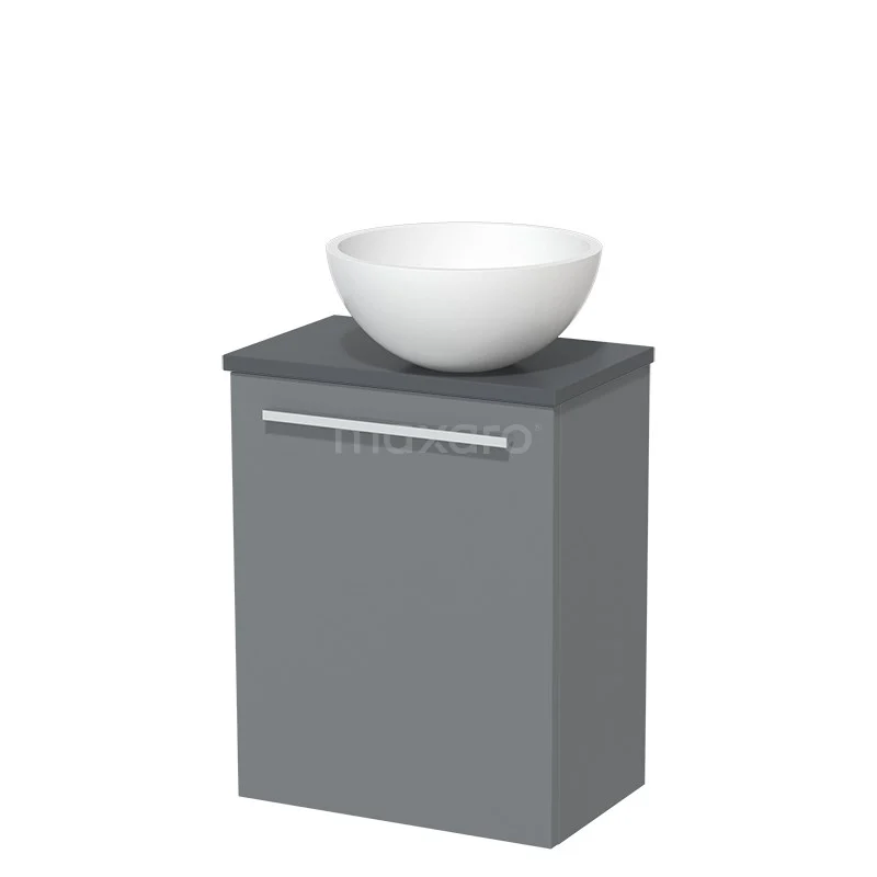 Dankzij het prachtige design is het meubel een blikvanger in de toiletruimte. De onderkast heeft een middengrijze afwerking met een donkergrijs wastafelblad.