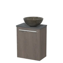 Toiletmeubel Met Waskom Natuursteen Modulo Donkerbruin Eiken Vlak 41 Cm Donkergrijs Blad