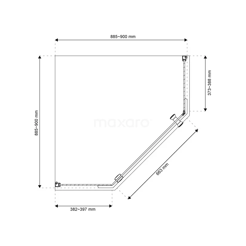- Zowel de vaste wanden als de draaideur zijn gemaakt van 8 mm veiligheidsglas