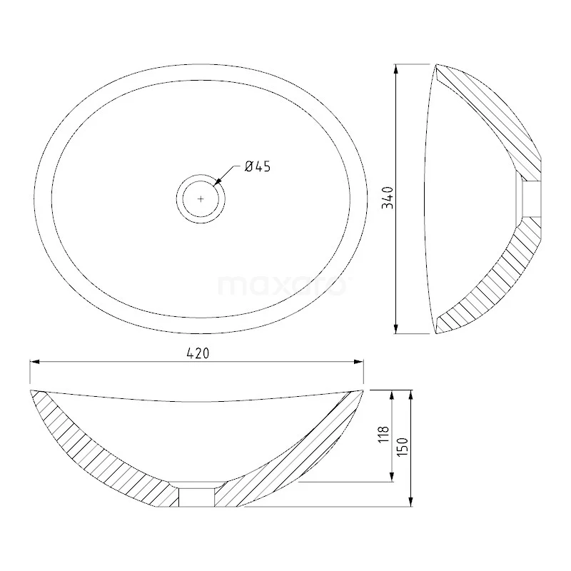 De Novanta-waskom is gemaakt van de natuursteensoort Blue Stone. Dit materiaal komt rechtstreeks uit de natuur, waardoor elke kom uniek en massief is. Zo heeft ieder product een eigen tekening en verschillende kleurschakeringen. Verder is de waskom te herkennen aan de robuuste en luxe uitstraling. Bovendien zorgt de waskom voor een wellnesslook. De ovale kom is 42 cm breed, 34 cm diep en 15 cm hoog.